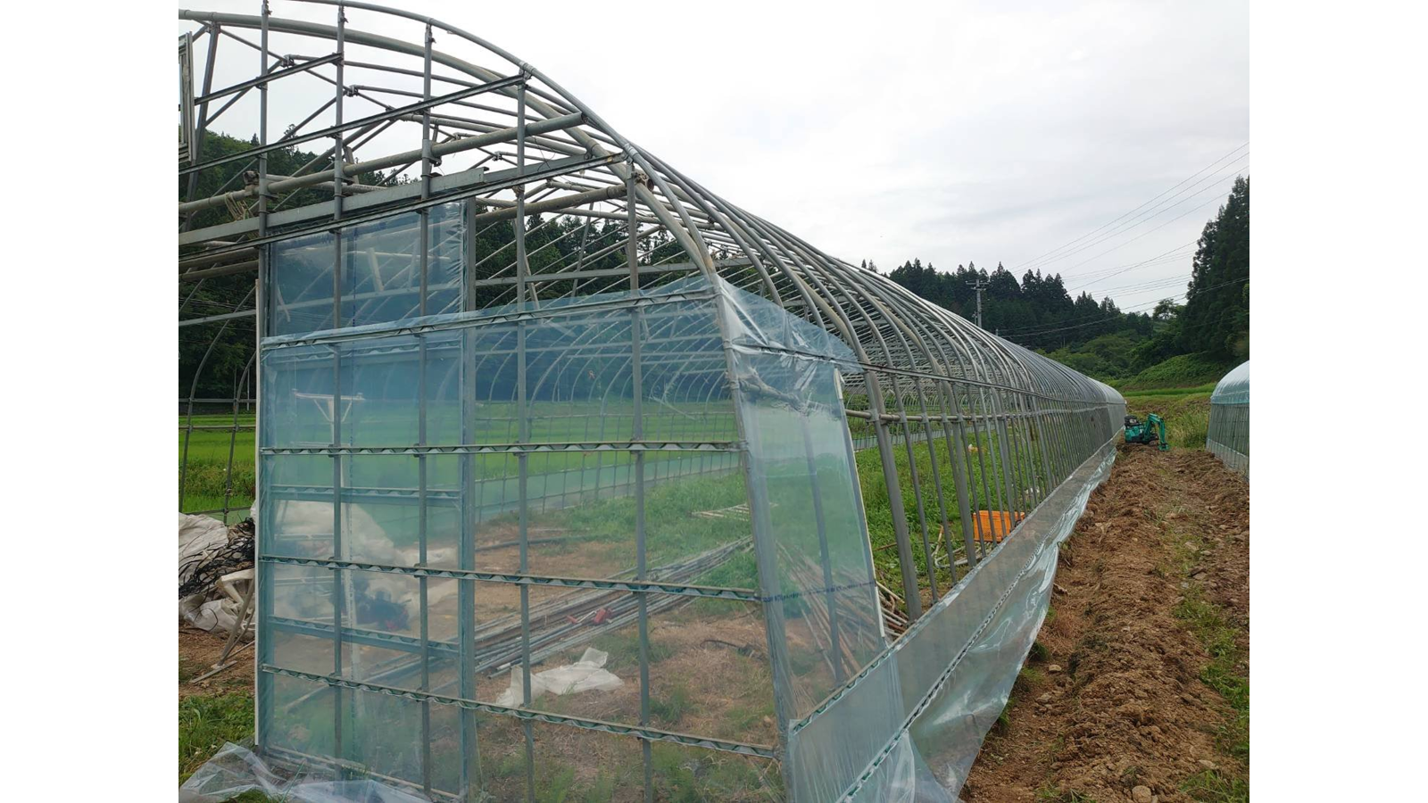 そうなんです!ビニールハウスの入口、出口は扉のサイズ、妻窓、補強工事、フィルムの寸法などで工事の方法が非常に複雑です。とてもこの場で解説できる内容ではないので省略しますが、手順だけ簡単に解説したいと思います。