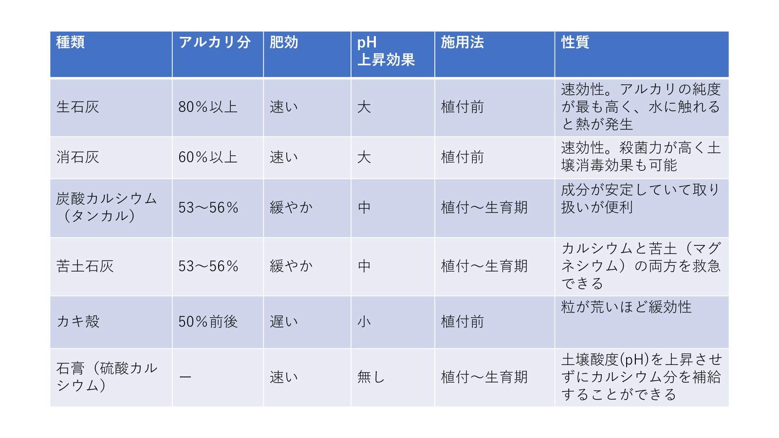 石灰資材の種類