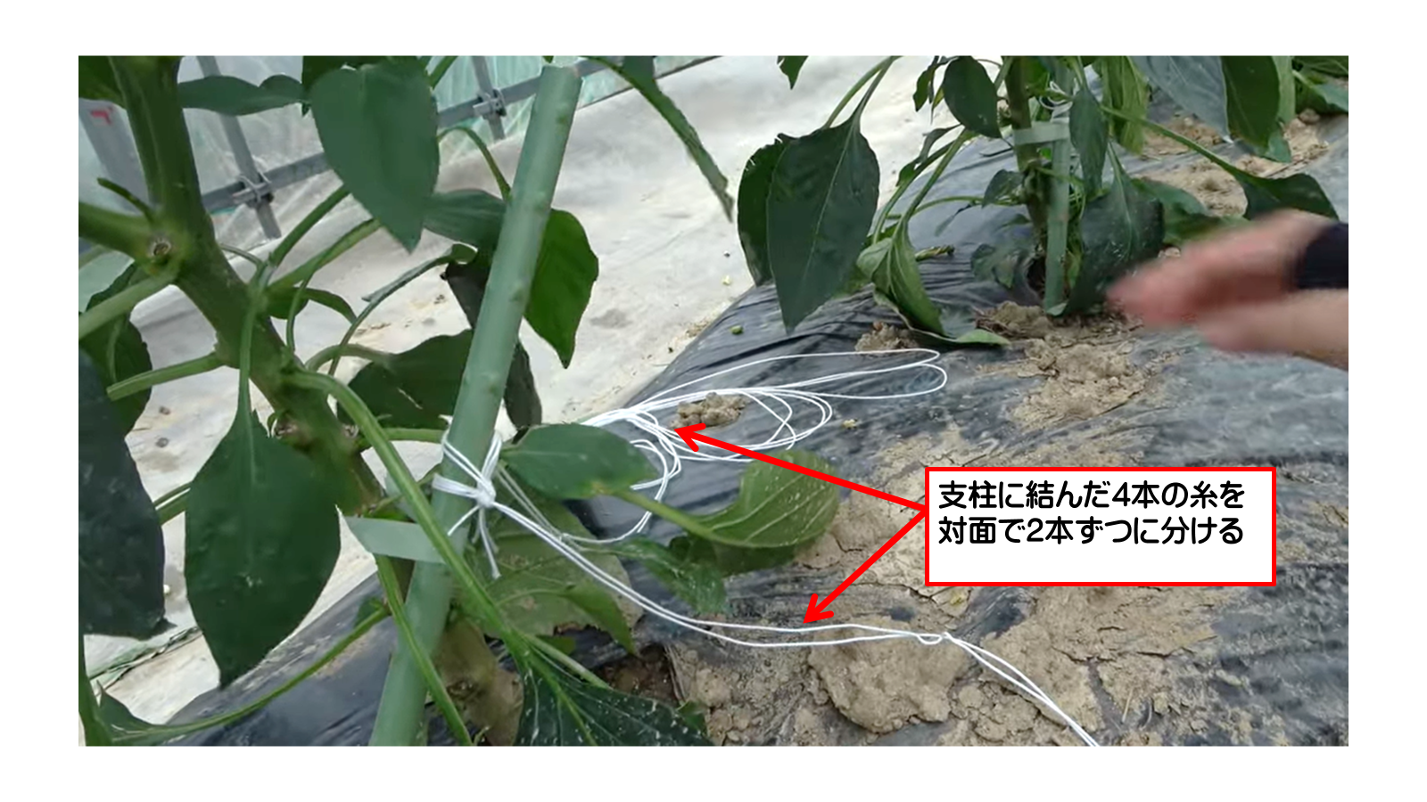 ピーマンへの誘引糸の巻き付け方