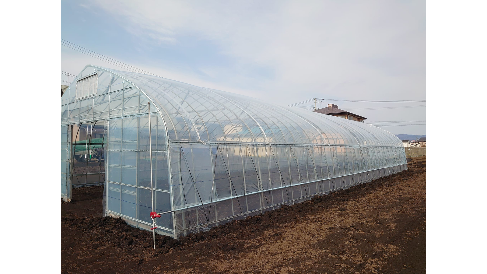 まず確認しておくことは、設置したいビニールハウスのサイズを計測し設置場所に収まるかを確認します。例えば作業通路の確保、ハウスとハウスの間隔、隣接する建物との距離など計測しておくことです。なんとなく入るだろうと思って組み立ててしまうと、軽トラック等が入らない、堆肥置き場がない等のトラブルが起きハウスの移設をするはめになるかもしれません。