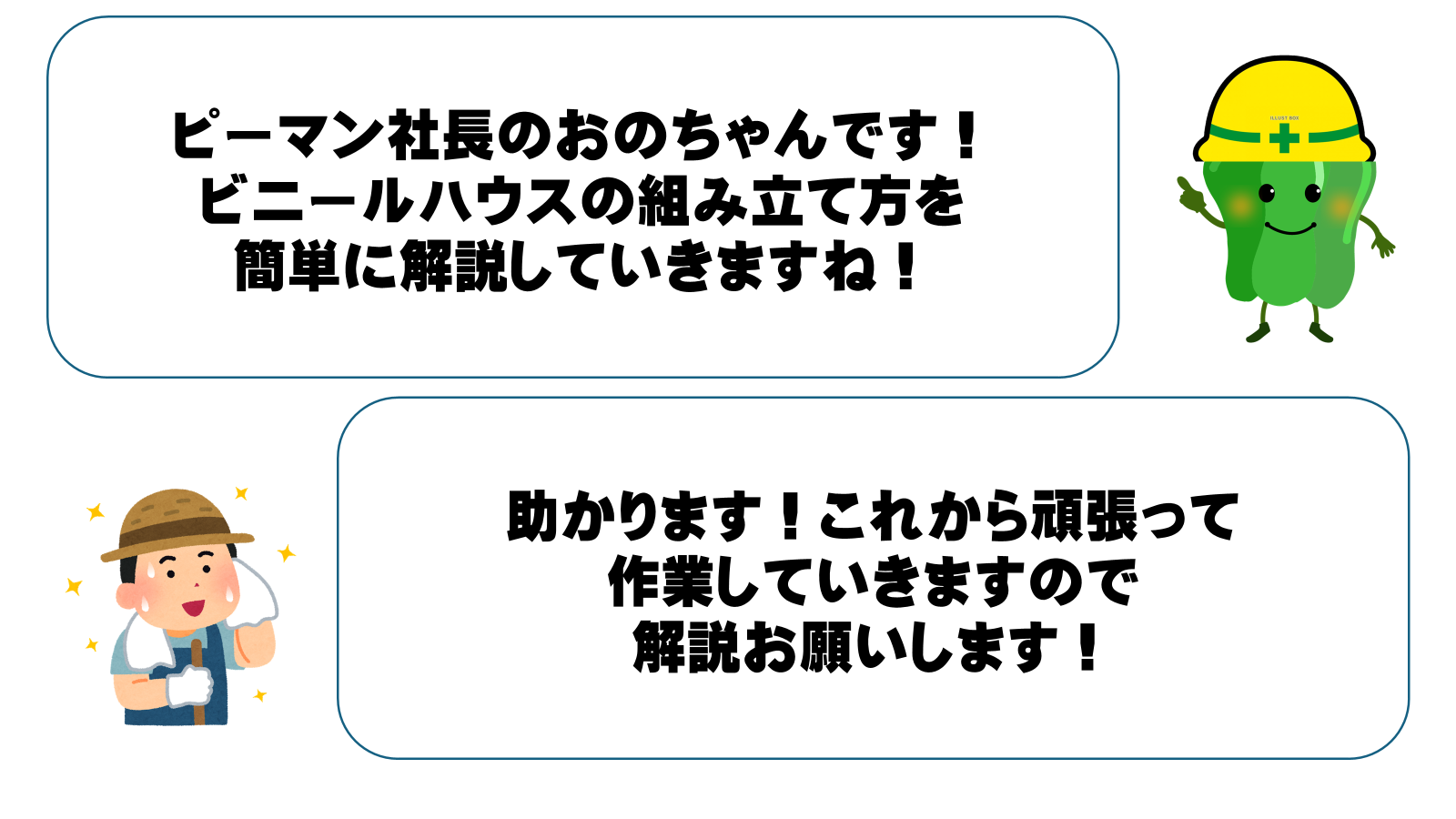 そんな私達プロ職人が次世代へ技術を継承すべくピーマンブログの制作を開始しました。ビニールハウスの組立て方をどこよりも詳しく解説していきますのでぜひ参考にしてください!