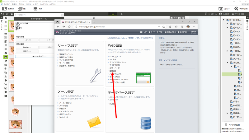ログインすると、上の図のようなページに入りますので簡易CGIをクリックします。