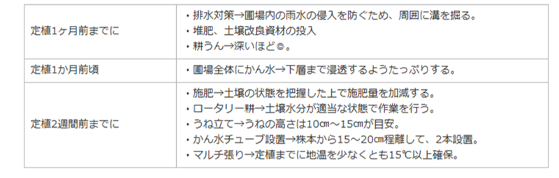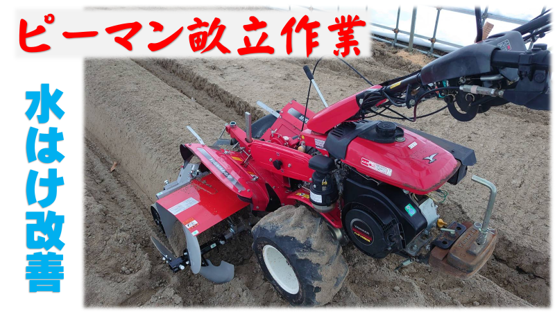 ・ピーマンの根は過湿や酸欠状態にとても弱いので、水はけの悪い圃場や水田転作圃場では事前に対策を講じます。