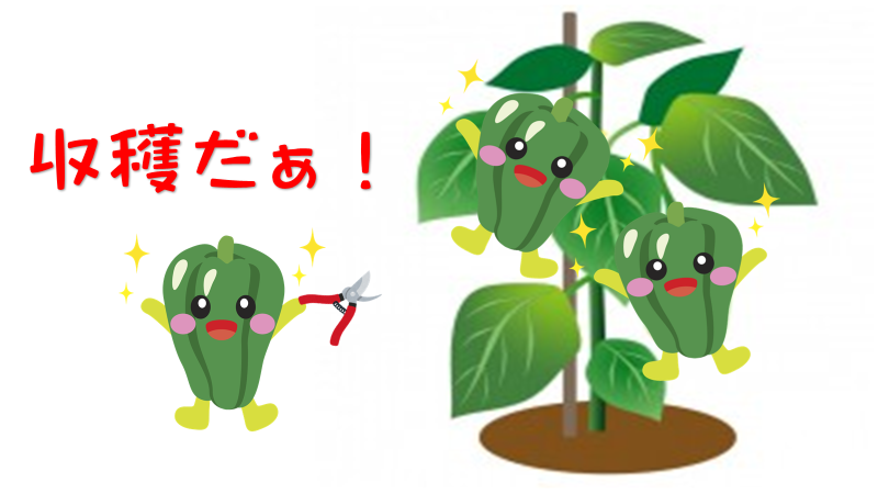 ピーマンを何個も実らせたままにすると株が弱ってしまったり、折れてしまったり株の負担になってしまうので収穫の遅れに注意しましょう。