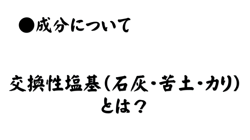これらには拮抗作用があり、それぞれの塩基が十分に土壌に含まれていたとしてもバランスが悪いと作物に十分吸収されないということがあり、この三つの要素は互いに無視できない存在なのです。