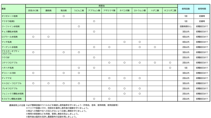 私達がピーマン栽培で使用している農薬を下記にまとめていますので参考にしてみてください。