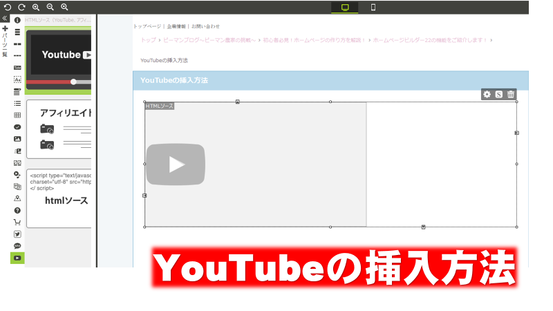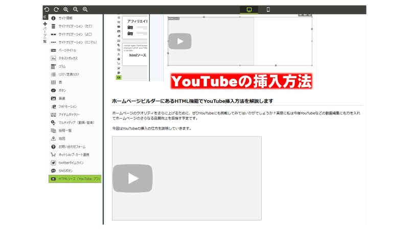 ホームページビルダーにあるHTML機能でYouTube挿入方法を解説します