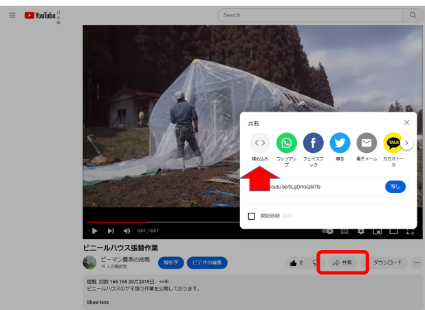 のYouTubeをクリックし、ページ内の挿入したい箇所に貼り付けます。
