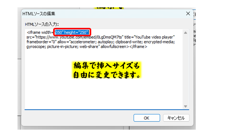 編集から挿入するサイズも自由に変更できます。数字を適度なサイズに変更するだけです。