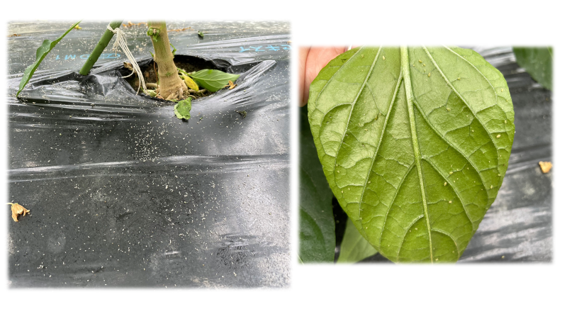 - 【対策】冬期間、雑草を繁茂させたままにしたり、残渣を放置したままにしないことで、ホコリダニがハウス内で越冬するのを防ぎます。被害の早期発見が鍵となります。