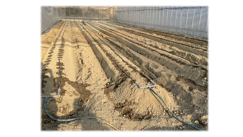 4月上旬に定植するので、3月中に畝を立て、かん水チューブを設置して水を通します。