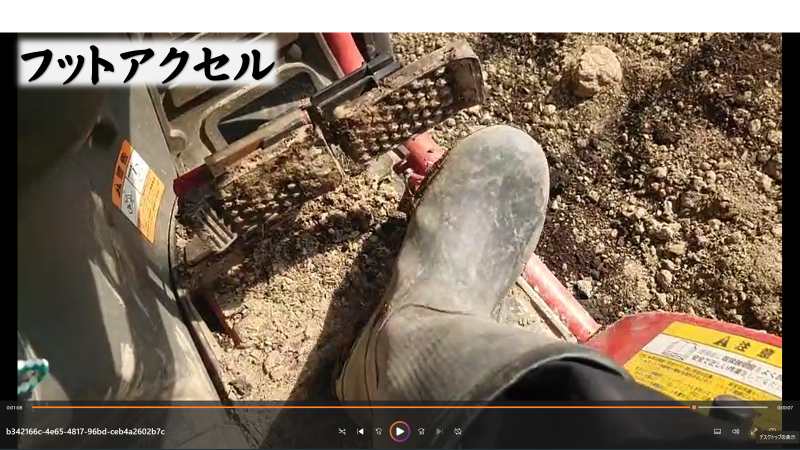 ハンドル付近のアクセルの他に、足元にもフットアクセルがついています。土の状態によってアクセルを強弱しながら耕運作業をします。以上、トラクターの機能を簡単に説明しました。