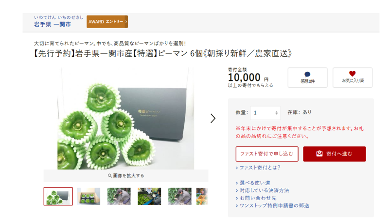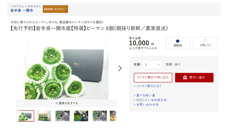 また2021年より一関市ふるさと納税に事業者登録をおこない私達の努力の結晶であるピーマンを出品することになりました。