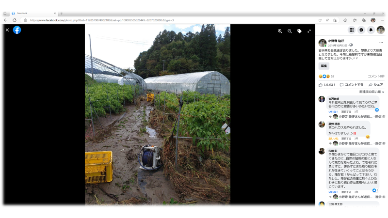 仲間と共に農業経営はさらに勢いを増し2019年には目標にしていた生産売上高1,000万円を達成することができました。誰もが農業経営がさらに伸びていくと信じていました。