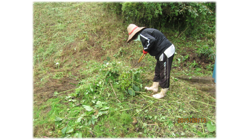 草を刈り、竹を切り、切り株を掘り返し畑を作りました。