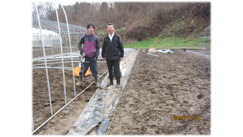 素人だったのですが、試行錯誤してビニールハウスを建てました。就農当時からいつも相談に乗ってくれる一関市支援員の佐藤様には本当にお世話になっています。