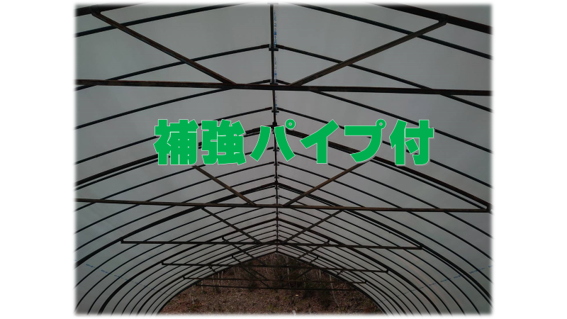 ビニールハウスは雪で倒壊する可能性や風で横転する可能性があることは事実です。ですがカーポートも同じリスクはあります。そこで私達は基本的な仕様として必ず補強パイプを設置するようにしています。