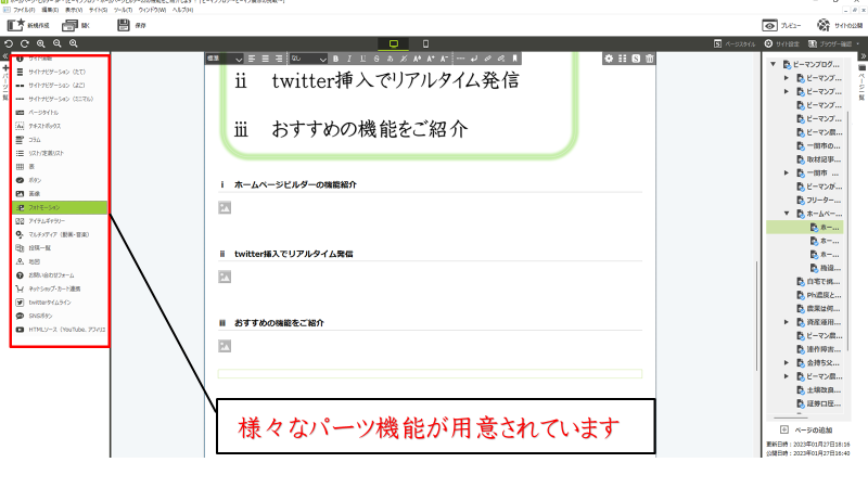 ホームページビルダーには様々な機能が用意されてます。まずはそれらの機能について一通りご紹介します。