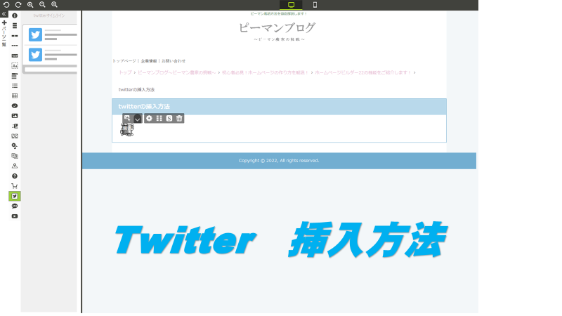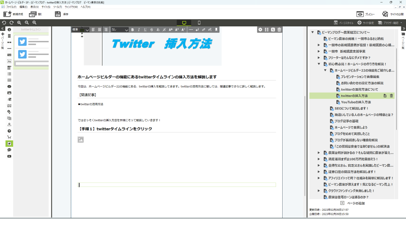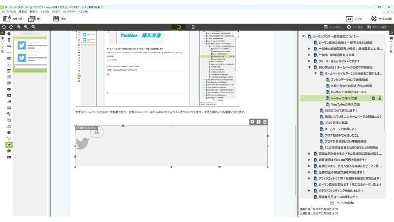 今回は、ホームページビルダー22の機能にある、twitterの挿入を解説してきます。