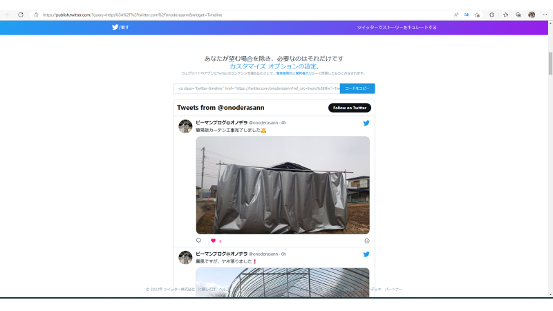 ⑩この通りtwitterを挿入することができます