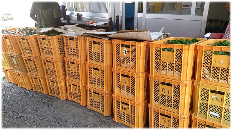 ちなみに写真のピーマンは半日かからず収穫したピーマンですが1箱約5,000円で出荷することができます。この日は40箱収穫できましたので、1箱=10㎏で計算すると、