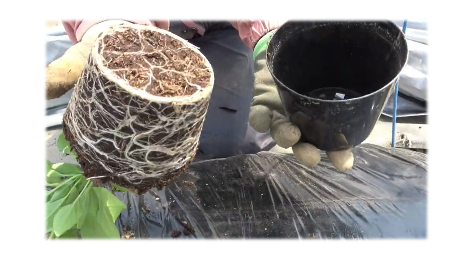 ・見えている根が茶色や黒く変色しているものやたくさんの根がはみ出しているものは老化苗の特徴です。