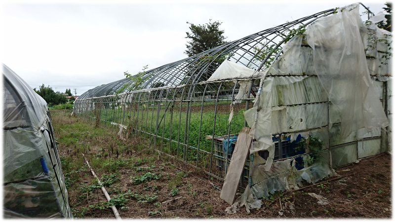 私がビニールハウス事業を開始した最初のサービスは中古ビニールハウスの買取サービスでした。上の写真は理由があり売りたいと相談にきたお客様のハウスです。私はこのハウスを2棟で8万円購入しました。