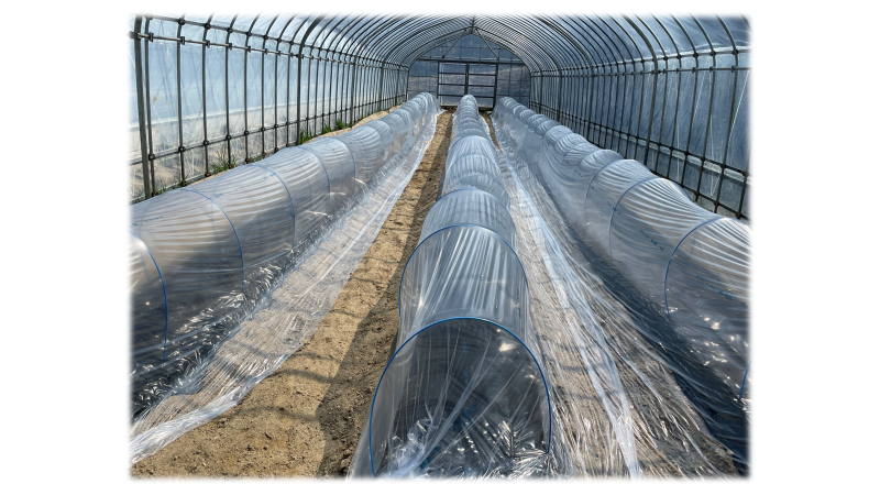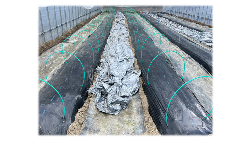 毎日15時を目安に換気を終わりにし、夜の寒さに備えてトンネルを被せます。