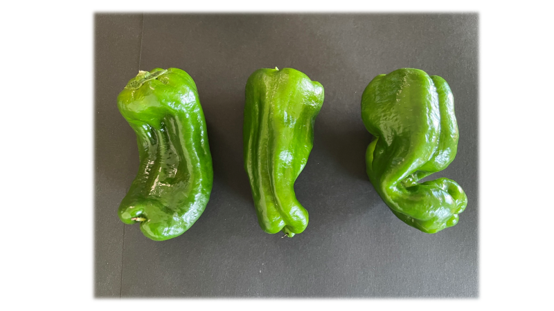 写真のような曲がっているピーマンは「変形果」と呼ばれます。