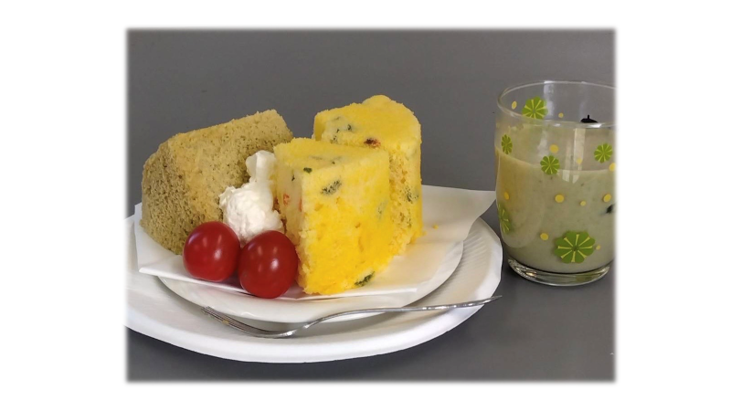 パートさんがピーマンシフォンケーキとピーマンスムージーを作ってきてくれ、皆で美味しく頂きました!