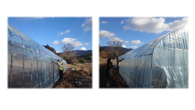 無事に張り終わることができ、ハウスも完成し、一安心です。