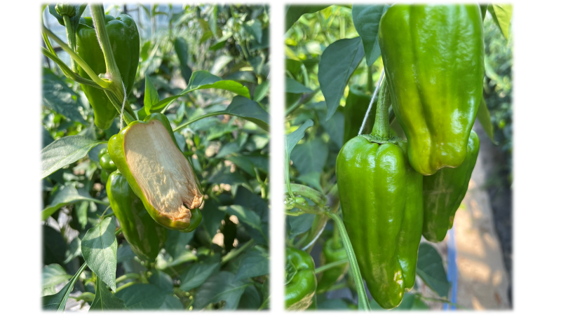強い太陽の日差しを浴びるとピーマンが日焼けし、変色してしまいます。