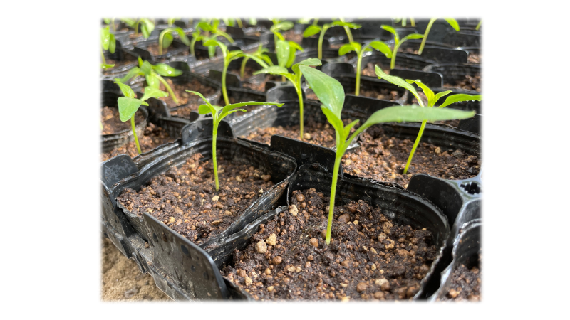 今日は天気が良く日中はピーマンの芽にもたくさん太陽の光が当たっていました☀