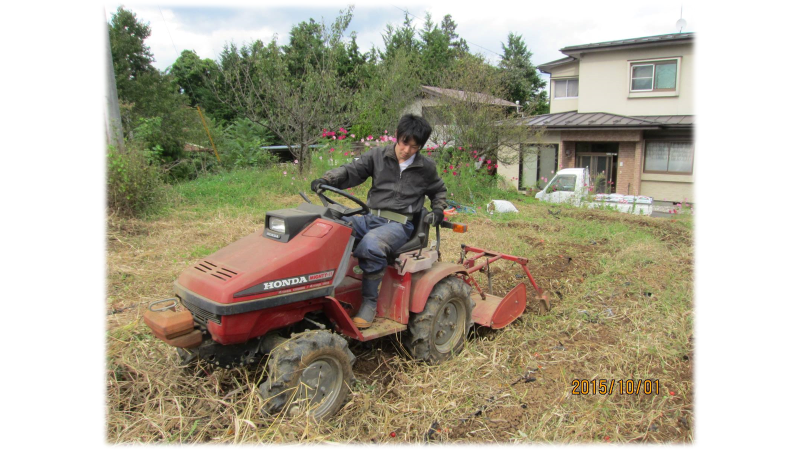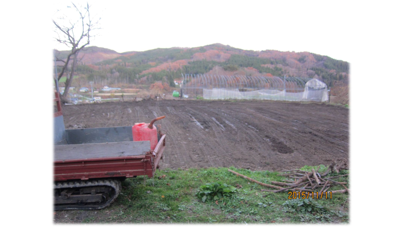 川崎町の畑開拓と同時に実家の庭を開拓して畑づくりを開始しました。日当たりは悪く切り株やゴミが散乱してあり畑づくりに入る前の段階で苦戦を強いられました。しかし近隣の方からのお力添えもあり少しずつ畑や設備を整えることができました。