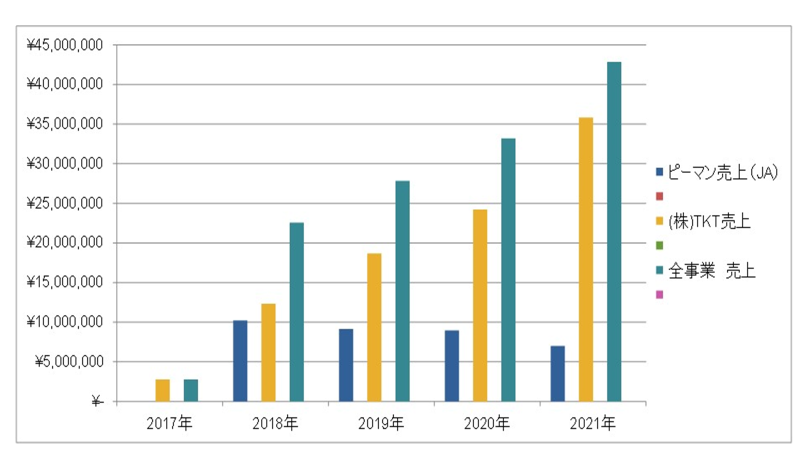 2017年は売上高200万円程度でしたが、翌年2018年には売上高2000万円を突破し2021年には売上高4,000万円、2022年には5,000万円を超えるまで経営を急成長させることが出来ました。