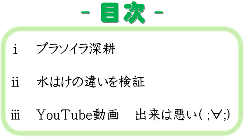 今回の検証をしてみて確信したことは、水はけ改善にプラソイラ深耕は必ず効果があるということでした。