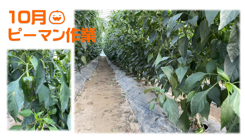 10月に入ると朝晩の冷え込みが厳しくなります。今までは8時前にはハウスの換気を開けていましたが、気温が低い場合は10時前までハウスを閉めっぱなしにして少しでもピーマンを暖めるようにしています。