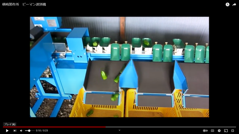 方法はないものかと調べたところ、この横崎製作所様のピーマン選別機を見つけました。