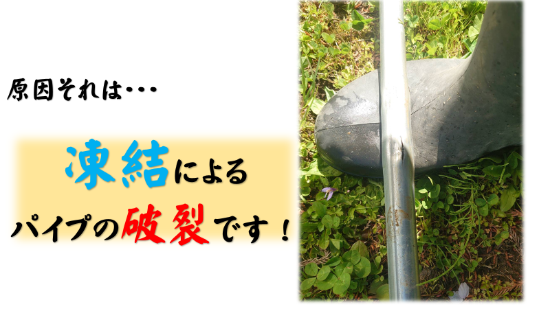 という可能性が非常に高いです。もし動かなくなった場合は焦らず一度立ち上がりのパイプが破裂していないかを確認しましょう。冬場など氷点下になる地域は立ち上がりのパイプ内に水が溜まり凍結することで、パイプを破裂させることがよくあります。