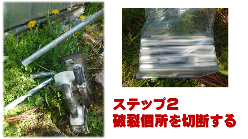 自分で直すことで修理費は約1,000円以下で済むと思います。難点としては、パイプを切断する作業と破裂したパイプを巻上機から抜くところです。もし難しいと感じた場合は、無理せずハウス工事会社である私達にご相談ください。低価格で対応致します。これで解説は以上となります。ありがとうございました。